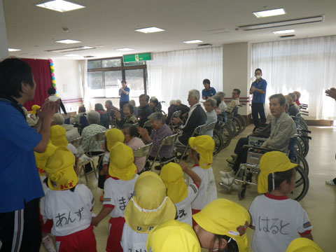 拍手を浴びながら到着した先は・・、『老人ホームあいのうら』