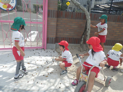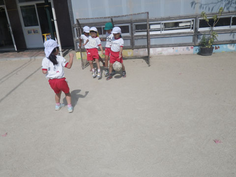 朝から元気に遊んでいると、園庭から泣き声