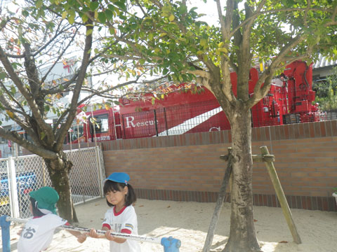 一輪車と消防車