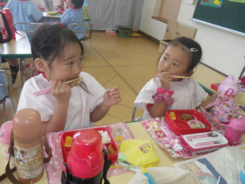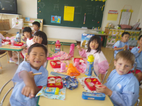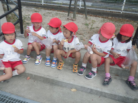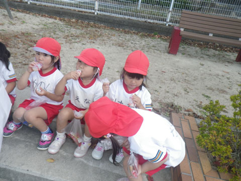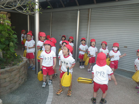 体操教室を終えた年中組さんがフットワーク軽く「いってきまーす!」