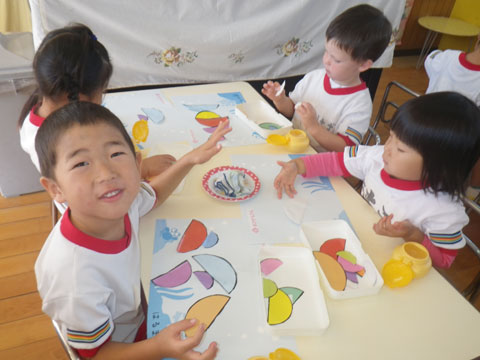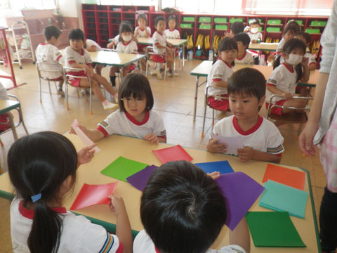 遊んだあと、製作をはじめる年中少児