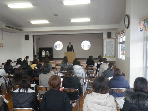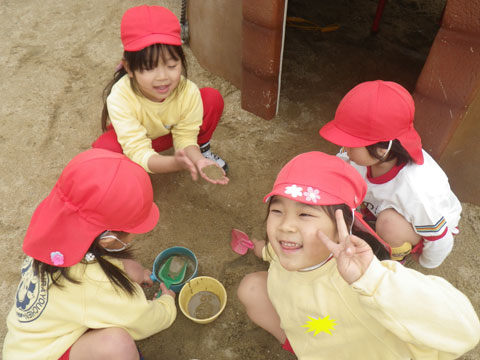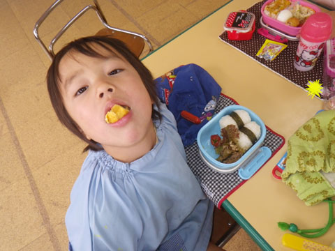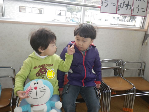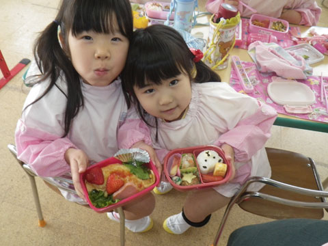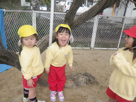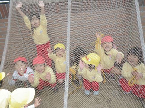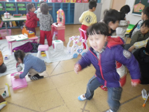年少組さんは遊んでる風景、年中組さんはアナウンサーさんによる