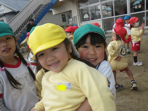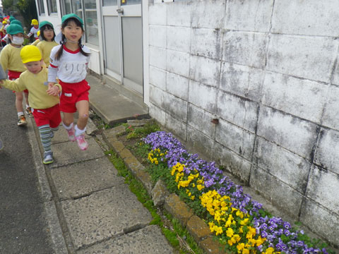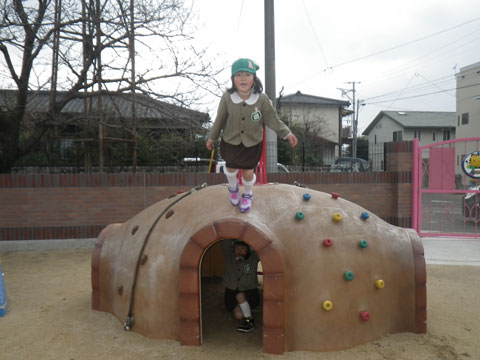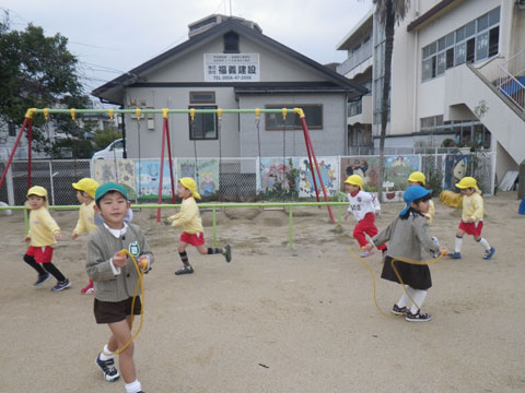 冷たい風にも負けず、朝から元気に園庭へ!