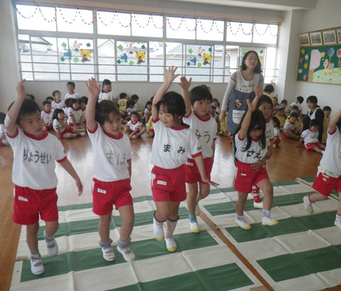 「たんたんたん みぎてをあげて みぎをみて ひだりをみて