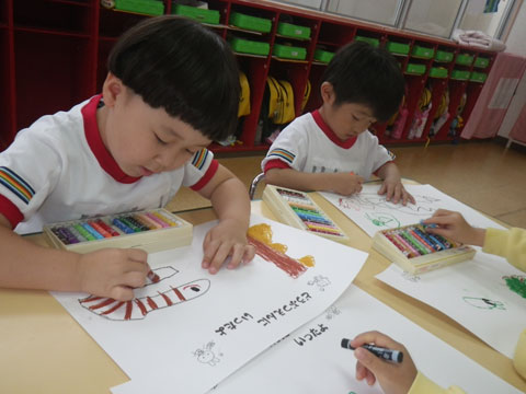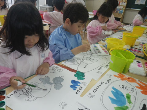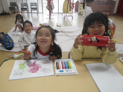 室内にて絵本を読んだり、好きな絵を描いたり、