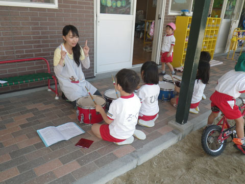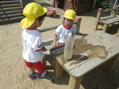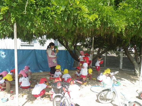 おかげで園庭は朝から大賑わいです