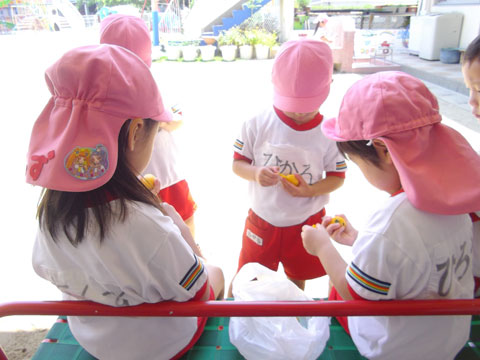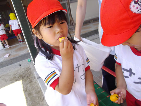 今日は東相浦幼稚園の年長児が「ビワ」を採りに出かけしました。