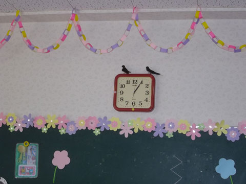 時計の上にある輪飾りは休憩には不向きだったようでツルっと足を滑らせる場面も!