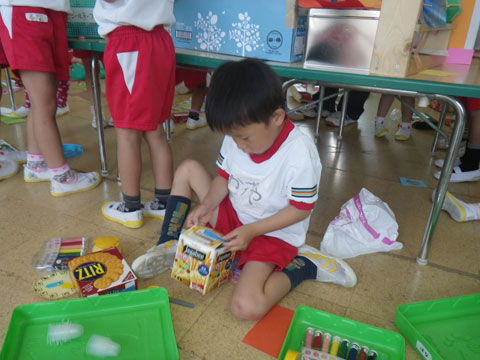 と、テープを貼ったり、画用紙で飾り付けながら作りました。