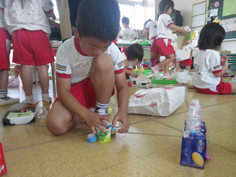 「ヨーグルトのカップだれかちょうだ〜い!」
