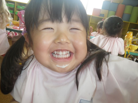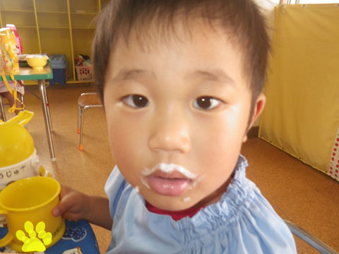 こうやって口の周りにこんなに牛乳をつけながら飲んでくれるのも