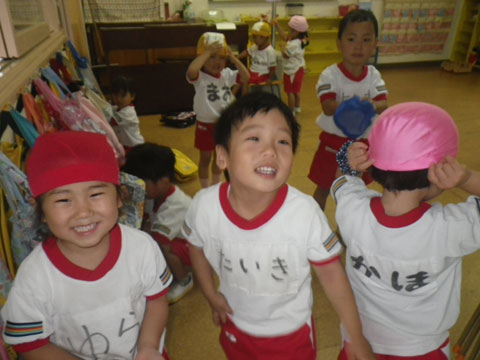 さて本日は年長児が『ひがちゃんプール』へ!