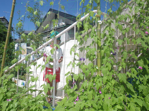 全員 種を蒔いたアサガオもこんなに大きくなっています
