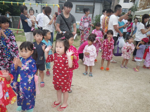 かわいい浴衣や甚平を身にまとった園児たちが続々集結