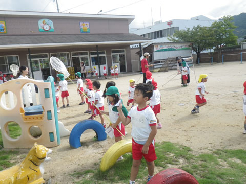 9月に入り、いきなり園庭に無数のとんぼが現れはじめました