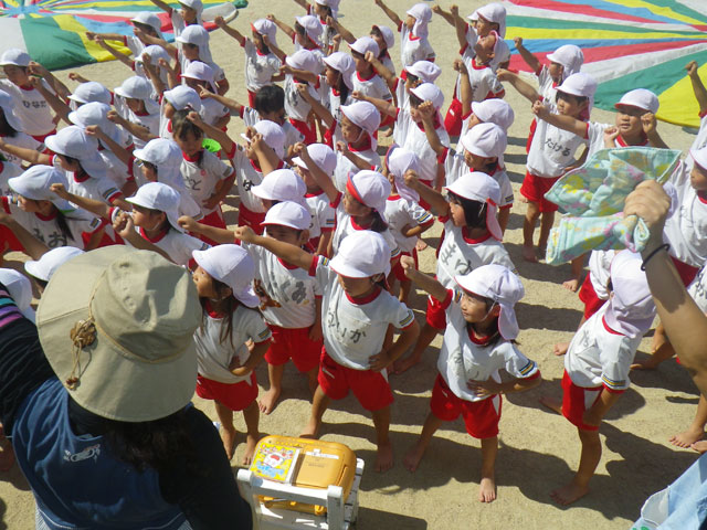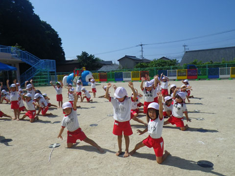 はじめ保育園の園児たちも室内でうんどうかいの練習中