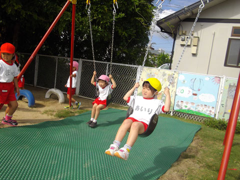 いつも人気のブランコですが、新しくなった今日はさらにこの行列