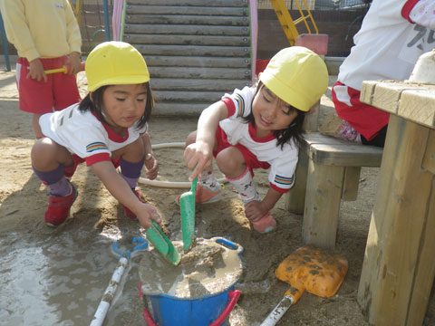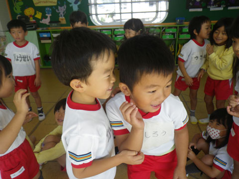 連休明け、トレーナーを脱いであそぶ園児が増えています
