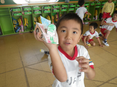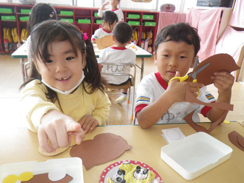 年中児が飴袋の製作に、年長児がスーパーカーの製作