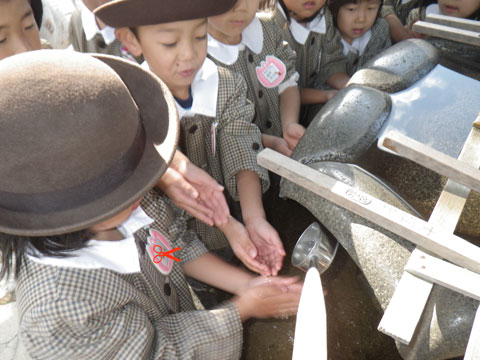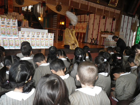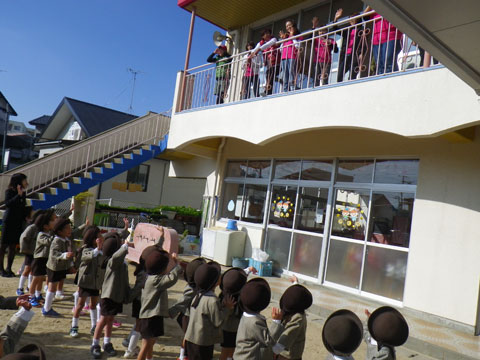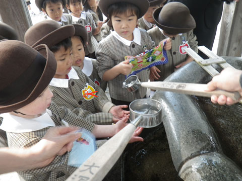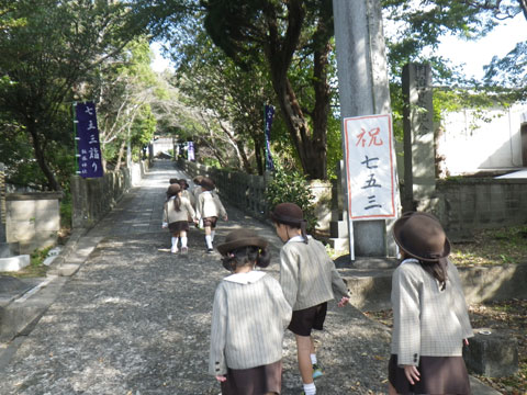 年長児は先日のおくんちでマーチング奉納演奏を行った場所です