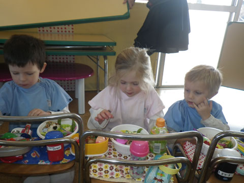 明日は年長児が相浦西小学校へ給食体験に行きますよ