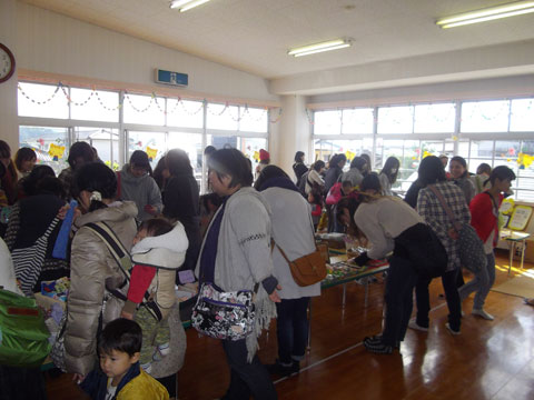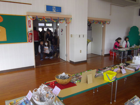 おゆうぎ室でバザー準備中のお母さんたちに、