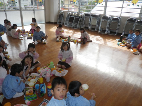 おゆうぎ室やさくらぐみで一緒にランチ