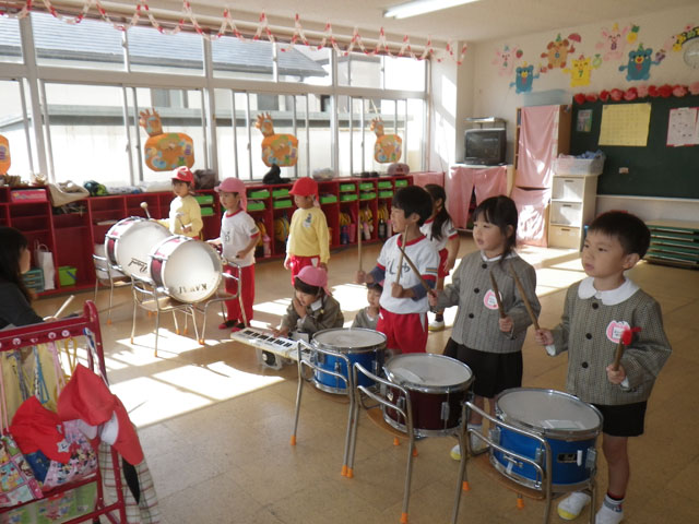 おゆうぎもそうですが、年中児は合奏も披露いたします
