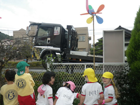 幼稚園の前に『はたらくくるま』を発見