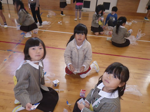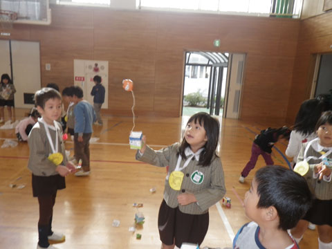 『牛乳パックけん玉』など、手作りのおもちゃでの