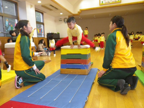 前転に後転、開脚前転に台上前転とする方も一所懸命ですが、