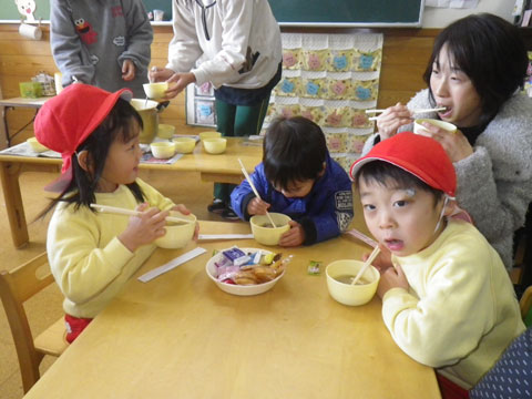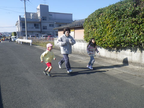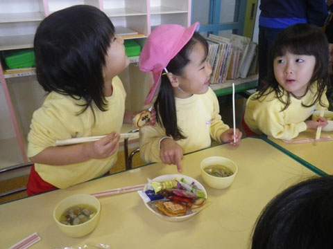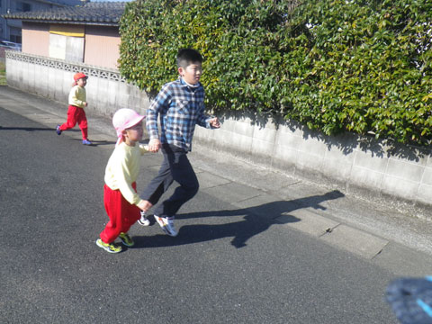 久しぶりの幼稚園、回って跳んで走ってお腹も減ってきたと思うので、