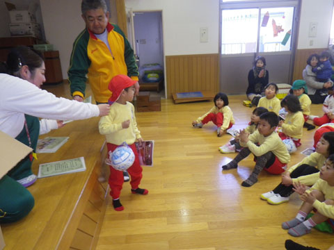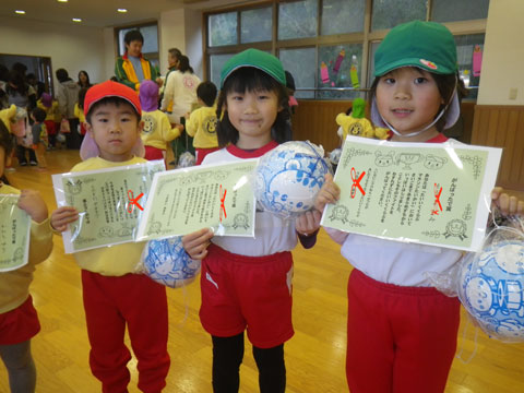 賞状・特製カレンダー・ぬり絵ができるボールのお土産