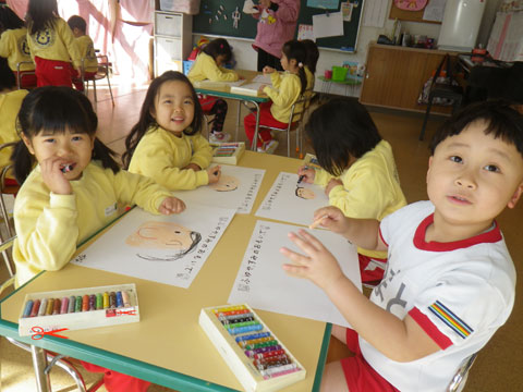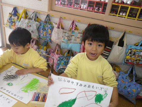 初詣に行った際の、鳥居を描く園児も多かったです