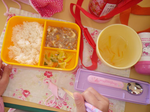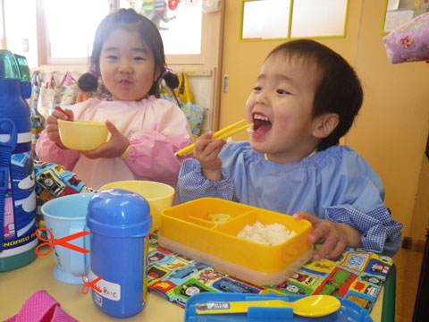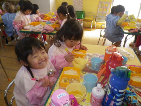 「ようちえんのきゅうしょくもなかなかいけるじゃん。」