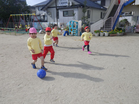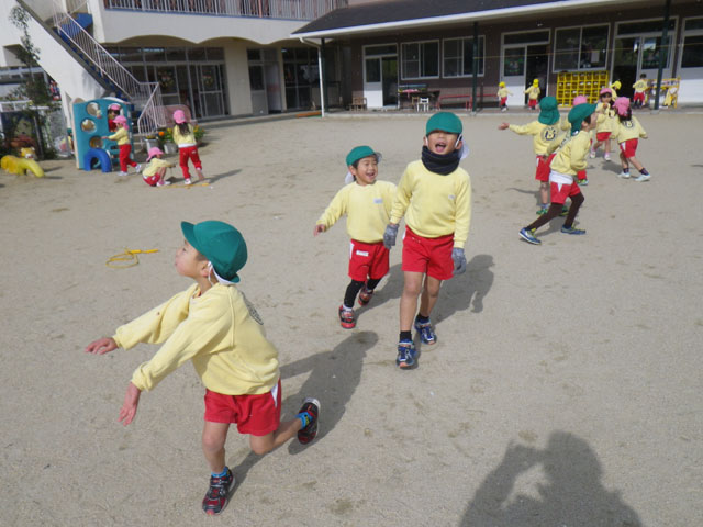 食後はなわとびをちょっと休んで、鬼ごっこにサッカー、