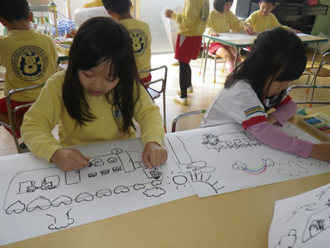実は年長児の描く絵が今度、西肥バスに掲示されることになりました