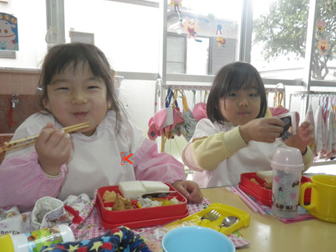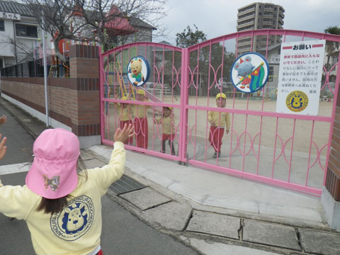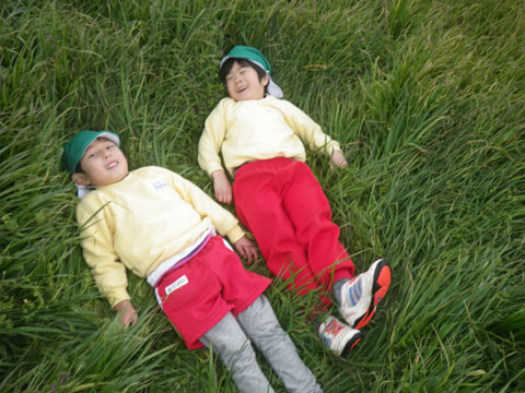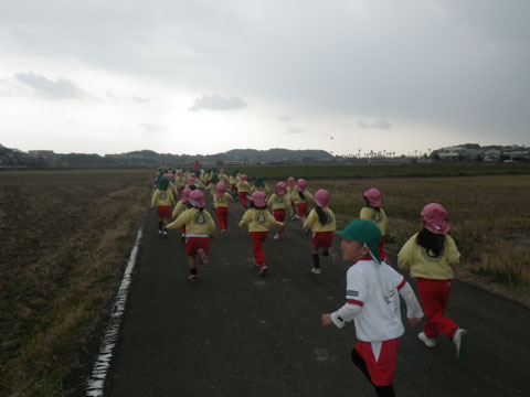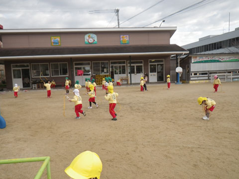 食後、晴れ間が見えるので年長児・年中児がフラッと出発!