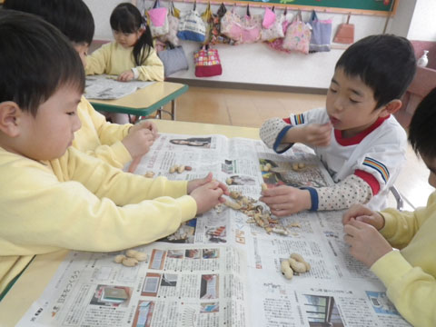 (大豆は給食でも出ますので、もっと食べやすい豆を・・。)