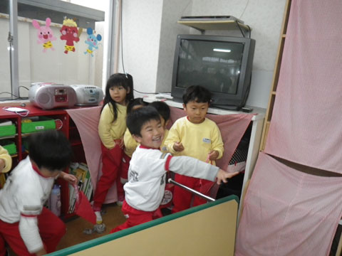ちょうど園内開放の時間だったので、未就園児のところへもお邪魔。