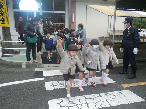 右手をピシッと挙げて、右を見て・左を見て・もう一度右を見て・・、