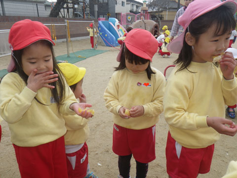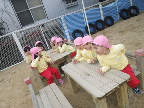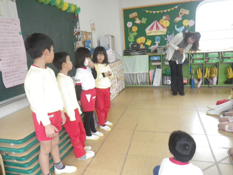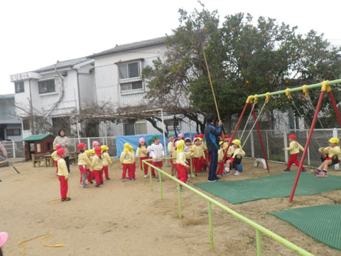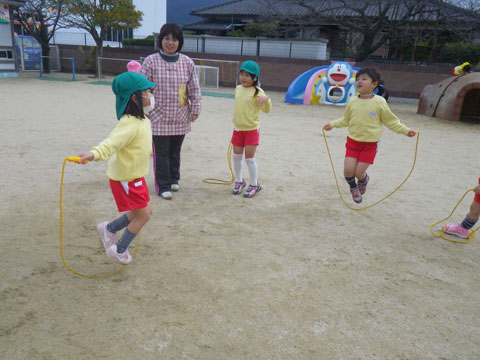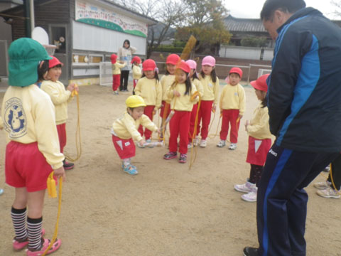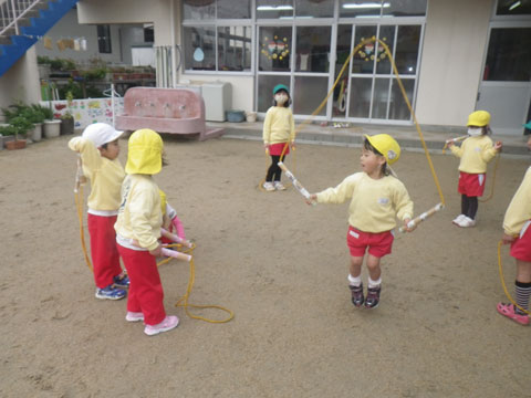 明日は休みですので、今日もなわとびを持ち帰る園児がいるかもしれません。