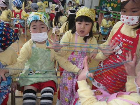 作る合い間の空き時間を使って、秘密の製作やあやとりを