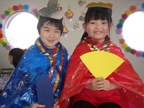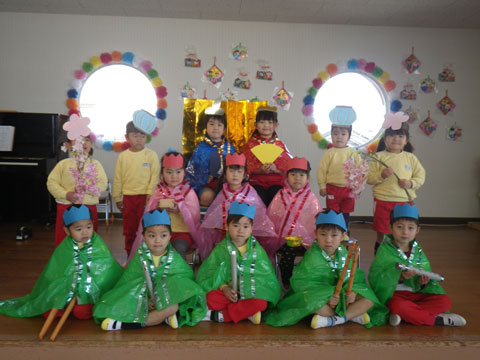 ひな祭り会の最後には、園児たちで人間雛を作りました