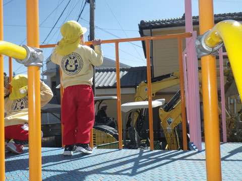 最近下水道工事のため『はたらくくるま』が園の周辺に多いです。