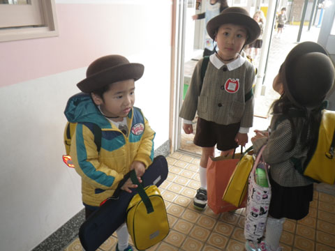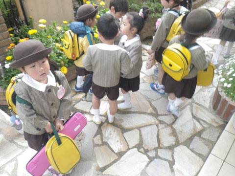 今朝、久しぶりに登園する幼稚園。