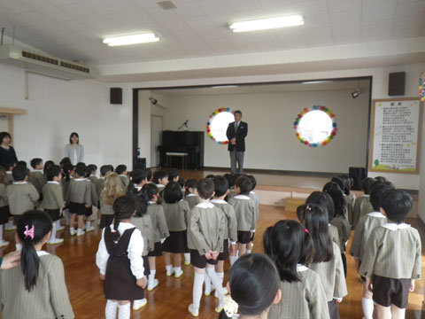 おゆうぎ室にて始業式