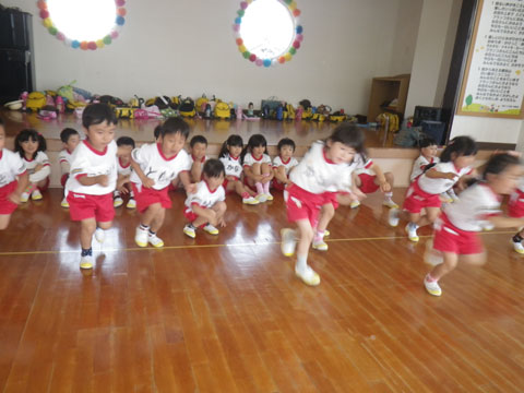 さっき元気がなくなってた園児も復活してバリバリ運動中