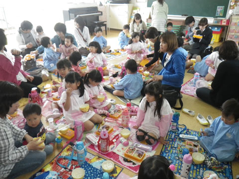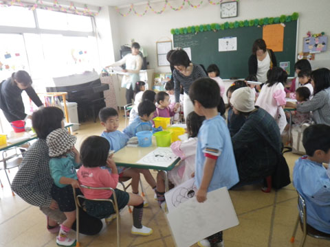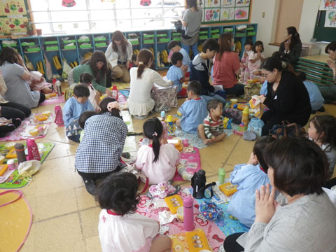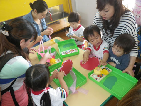 いつもはちょっと寂しくなる園児も、今日はお母さんと一緒の活動なので