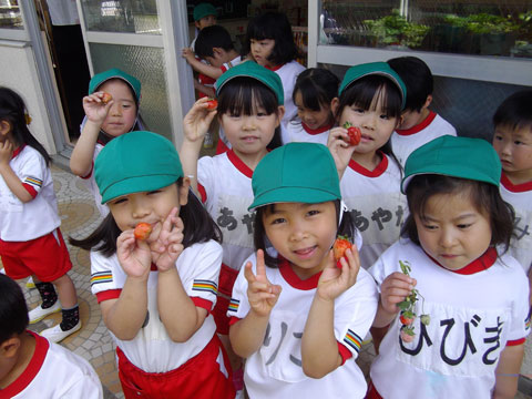 このいちごは、ももぐみ前にある『いちごハウス』から